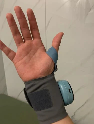 Whether at home or on the go, enjoy hands-free comfort with our portable, rechargeable wrist wrap. Its compact design fits easily in your bag, ready whenever you need it.